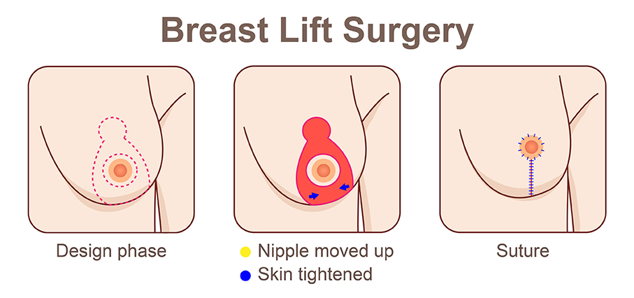 Also called “augmentation-mastopexy,” this cosmetic surgery removes excess skin and breast tissue to remove sagging and eventually resize the nipples, as well as the areolas.
